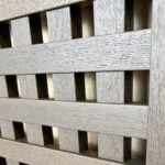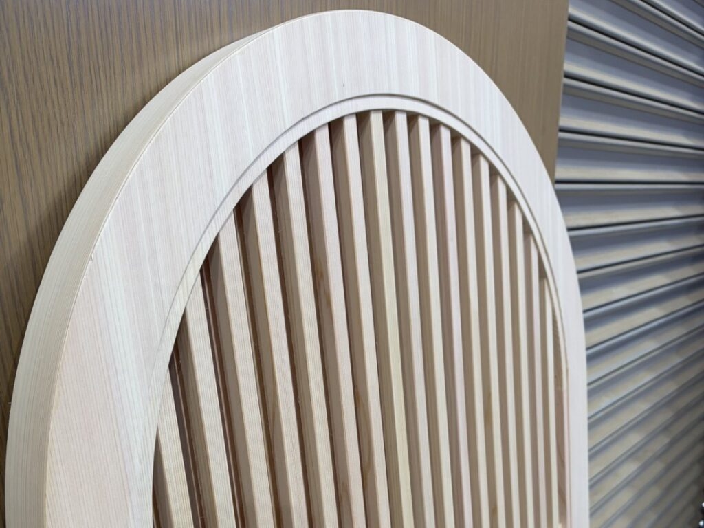 文彦社長代理ブログ ちょっとモダンな建具たち 2026年2月25日 by saito_admin 最近出荷した、ちょっとモダンな建具をまとめて紹介します。 2つずつセットの写真です。全体像写真は、背の高さをお伝えするためにどうしても縦長写真となってしまい、少々見づらいことご了承くださいませ。 加工→塗装→組立の工程で製作しています 高さ2.5mの建具、見上げての撮影 おなじみの、すばらしい曲線加工です この春リニューアルオープンする某高級旅館に向けて出荷します さりげない通風にこだわった、特製ドアです こちら、裏側です